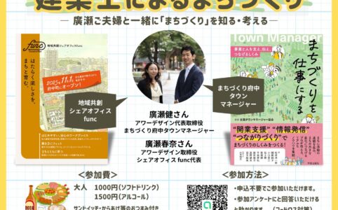 このたび、府中さくらガーデンにて開催される「ハッピーアワーカレッジ」に登壇する機会をいただきました。『まちづくりを仕事にする』出版&「シェアオフィス func」開業記念トーク&交流会、テーマは 「建築士によるまちづく...
